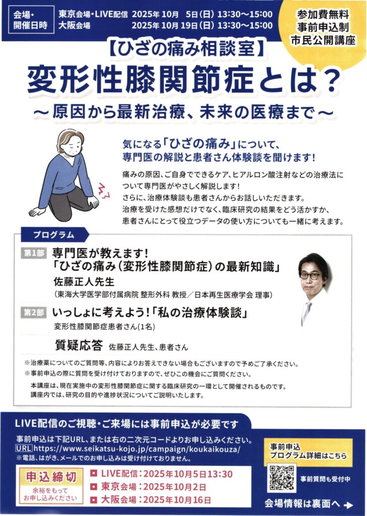 > お知らせ > 【ひざの痛み相談室】 LIVE配信のお知らせ